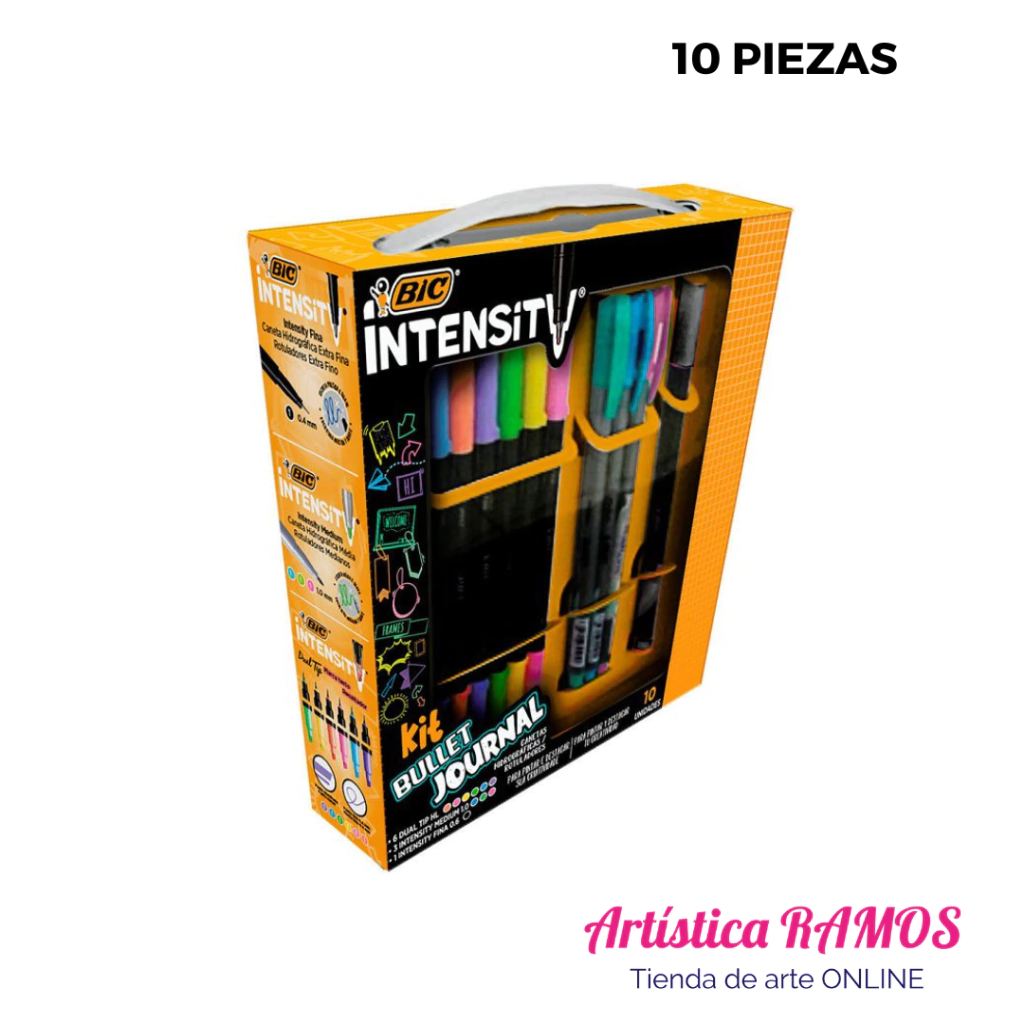 KIT BIC LETTERING INTENSITY X 13 PIEZAS Este kit completo incluye 6 resaltadores de doble punta, 3 marcadores de punta media y 1 microfibra negra, ideal para técnicas de lettering y bullet journal. Perfecto para destacar y detallar tus apuntes o proyectos creativos con precisión y variedad de grosores. Calidad BIC, durabilidad y colores intensos para potenciar tu creatividad en cada trazo. Ideal tanto para estudiantes como profesionales del diseño y la escritura.