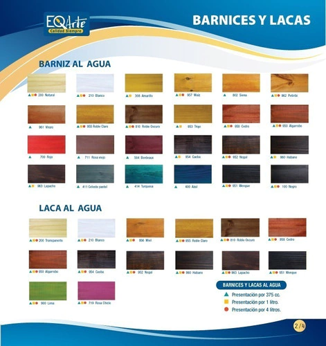 Laca ideal para realzar las vetas de la madera. Sella, colorea y protege en una sola aplicación. Solubles en agua. NO TÓXICO