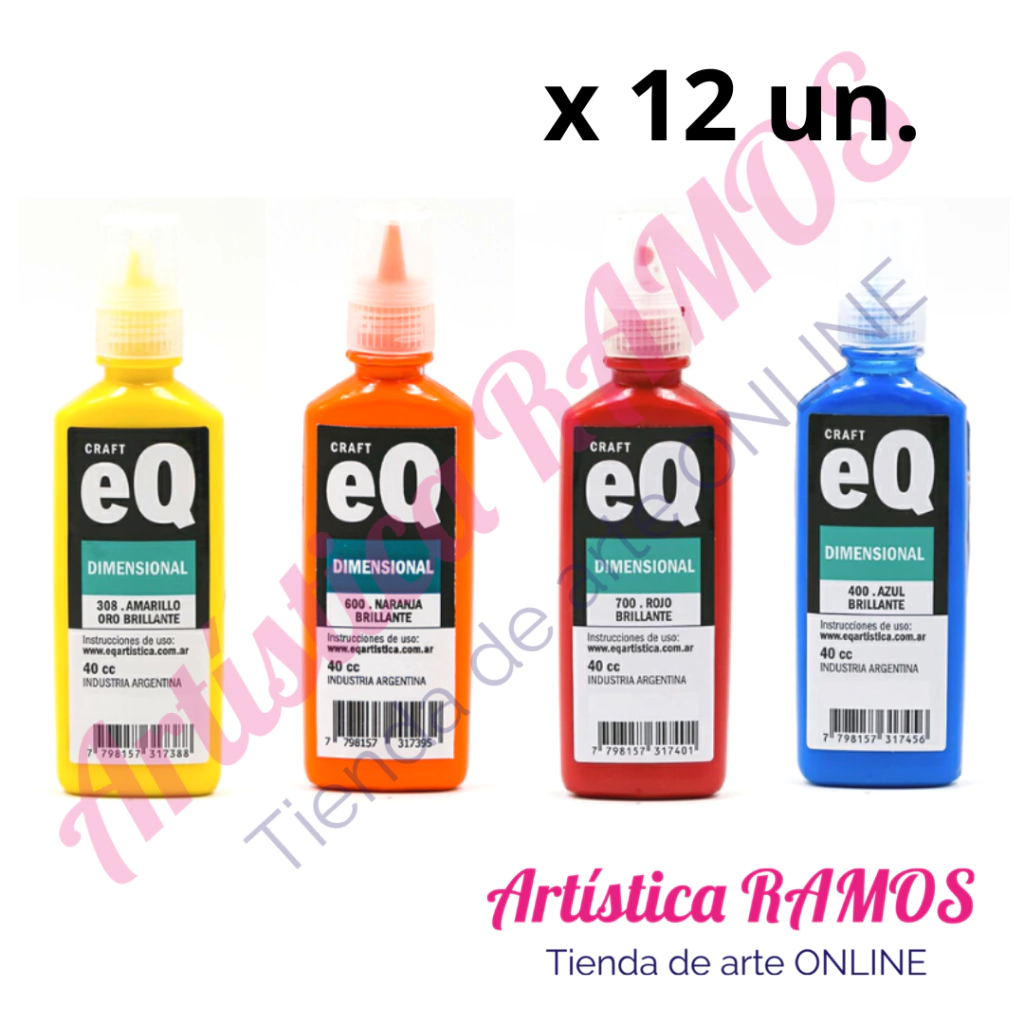 Pintura con relieve . Puede utilizarse sobre soportes flexibles (telas, cueros, goma eva, corcho, etc.) o soportes rígidos (madera, yeso, cerámica, etc.).Disponibles en tres lineas brillantes, metalizadas y glitter. Solubles en agua. NO TÓXICO