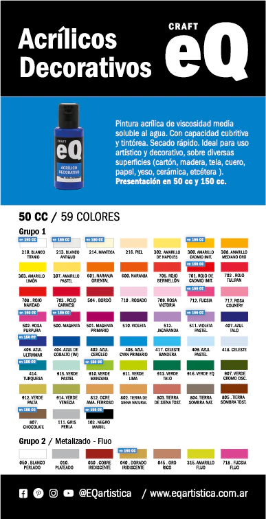 Pack 12 Acrílicos Decorativos EQ x 50ml