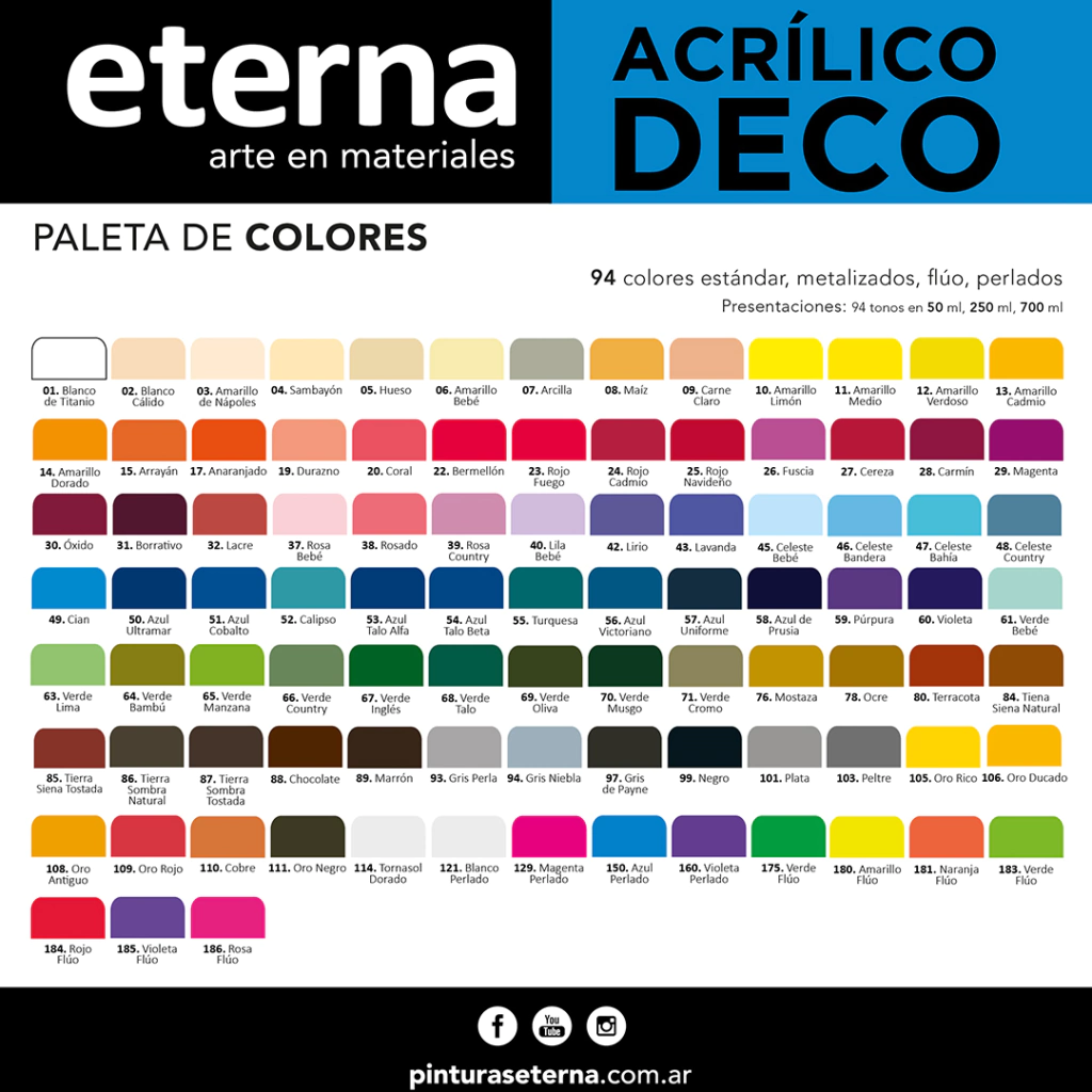 Promo 24 Acrílicos Decorativos Premium ETERNA x 50ml
